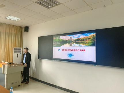活动进入到第二个议程,由教务处处长廖国琼对江西财经大学VR现代产业学院进行介绍。廖国琼处长通过建设背景、必要性和可行性、江财方案、保障条件四个方面进行切入,为到场的天美工作室工作人员进行了详细的介绍,并对学院的目标进行了阐述:“打造VR教育生态圈,为学院发展营造良好发展环境”。通过“会”——VR教育大会、“展”——VR教育展览会”、“奖”——VR艺术作品大奖、“赛”——VR创新创业大赛四方面为主线展开,为设计与艺术学院VR现代产业学院发展注入强大动力。在会议结束后,廖国琼与天美工作人员参观设计与艺术学院四个方向的工作室并与工作室的学生们进行了深入交流,为他们现阶段的问题答疑解惑,为加强校企合作助力。