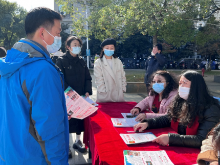 12月14日上午,由江西省女科协江西财经大学分会、江西财经大学工会女工委、江西财经大学非物质文化遗产研究中心共同主办的“国家级非遗项目萍乡春锣的保护与传承”宣传普及活动在麦庐校区第一食堂门口顺利举行,该活动由江西财经大学非遗中心副主任、设计与艺术学院音乐系李霜副教授主持。活动过程,分发了近千份宣传手册,吸引了众多在校师生的驻足学习,营造出了浓厚的非遗传承氛围。 现场参加活动的老师有信息学院副院长齐亚伟、设计与艺术学院副院长黄志明、图书馆翟娟、设计与艺术学院袁菊红、魏绪英、胡玲、林莉、雷敏、邓婷、刘歆玮、黄晓薇、余瑶等。