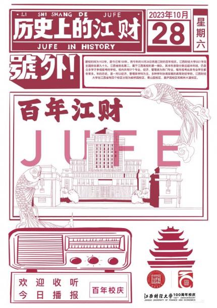 【前言】春秋往复,寒暑易节。日升日落,星河流转。一百载造就国之栋梁,一百载博得桃李芬芳;风雨兼程,潜心奉献,与日月同辉,与山川共存。正值百年校庆之际,设计与艺术学院研分会祝愿江西财经大学继续积历史之厚蕴,更展宏图,再铺华章,百年生日快乐!