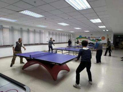 (图为养老活动中心处的棋牌室与乒乓球厅)
