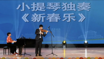 另外,小提琴独奏《新春乐》,由我院音乐学本科2022级张韬文同学独演奏、方晴老师伴奏,小提琴声音如同春风拂过枝头,唤醒沉睡的花蕾,洋溢着一种深情和温暖,仿佛是春日的阳光穿透冰雪,温柔地照耀着大地。