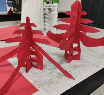 “剪纸也可以和其他工艺相结合”是沈哲老师在课堂上向同学们所说,这节课老师不仅介绍了豫章剪纸的文化和各项技法,还指导同学们完成了各自的作品——“春”。