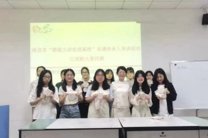 自5月18日起到6月9日,为了进一步让学生了解我国非物质文化遗产培养他们对传统文化的热爱和传承意识,在南昌市文化馆、江西省财经大学设计与艺术学院,开展了第四期群星大讲堂进高校非遗传统人培训活动。在本次活动中,共开展了六类不同的非遗技艺,分别为罗亭面塑,豫章剪纸,国画写意绣,瓷板画,印章雕刻,文港毛笔制作技艺,。让每位同学都可以选择自己感兴趣的非遗技艺,弘扬中华传统文化。