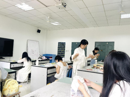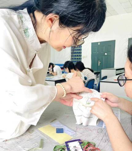 在刘海霞老师的精心指导下,同学们都掌握了国画写意绣的基本针法,包括平针、斜针、挑针等多种刺绣技巧。这些针法的学习为他们在国画写意绣的创作中打下了坚实的基础,使同学们能够运用这些技法在今后的画布上绣制出生动且富有艺术感染力的作品。