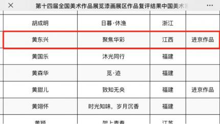 在近日公布的第十四届全国美展评选结果中,江西财经大学设计与艺术学院教师黄东兴老师的作品成功入选并获进京资格,这是我校教师迄今首次获进京该重点展览。