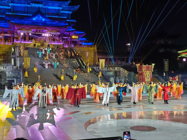 通过视频投影、灯光效果以及一百多名演员精彩的表演,这场演艺手段丰富的演出给观众带来了沉浸式的体验。演员们用他们精湛的演技,将历史人物演绎得栩栩如生,让我们仿佛与古人进行了一场跨越时空的对话。他们的每一个动作、每一个表情,都饱含着对滕王阁的热爱和对历史文化的尊重。