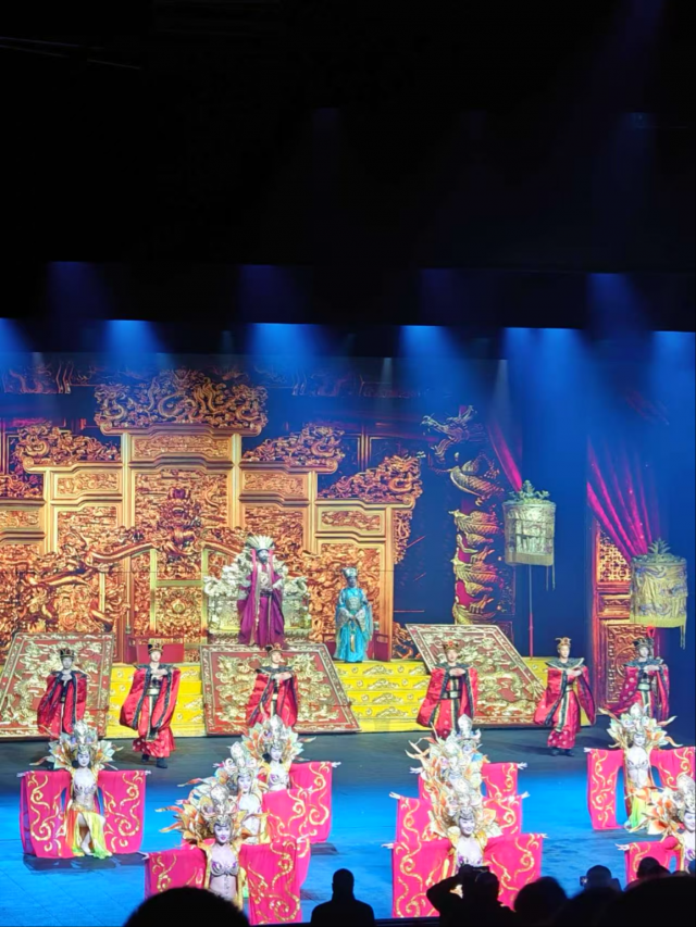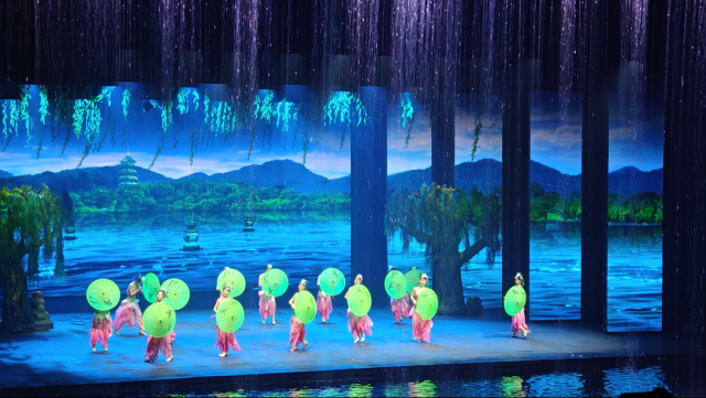 大型歌舞表演《宋城千古情》是杭州宋城景区的灵魂,用先进的声、光、电科技手段和舞台机械,以出其不意的呈现方式,将良渚古人的艰辛、宋皇宫的辉煌、岳家军的惨烈、梁山伯与祝英台和白蛇许仙的千古绝唱表现的淋漓尽致,带给观众视觉体验和心灵震撼。作为杭州的城市文化名片,它以其高质量的演出水平以及沉浸式的感官体验,吸引着全球各地的游客前来观看。