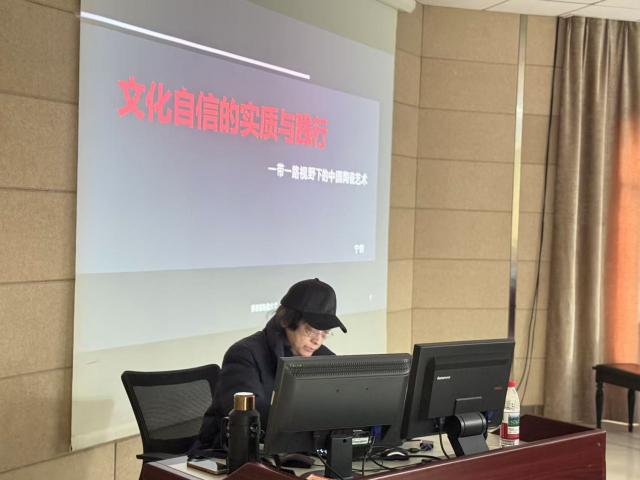 他结合图例讲解了西方文化艺术对中国当代艺术的影响,并强调了文化自信的重要性, 他强调,在创作中不能缺乏文化自信,不能以西方的标准来判断中国的艺术,不能以取悦西方为特色。真正的艺术家要志存高远,自觉践行文化自信。宁教授希望,中国传统艺术能在我们这一代得到传承与创新,并能在当今多元化的世界中确立自己的位置,进而在新时代大放异彩。