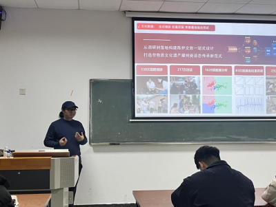 刘明教授凭借其深厚的学术功底和丰富的实践经验,为参会者呈现了一场高水平的讲座。他首先由陕西非物质文化遗产的保护传播以及设计方面引出新技术的带来的新的生产要素来倡导同学的研究以及设计的创新。并基于社会需求等因素引出对大学教育的思考,以此为前提介绍了陕西科技大学设计学专业的悠久历史、发展历程及明确的办学方向,并着重强调了学校在挖掘与传承地方文化,特别是红色文化、黄河文化、丝路文化以及轻工业智能设计领域所取得的显著成就。
