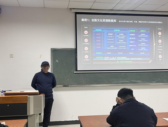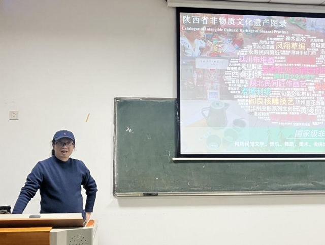 在讲座中,刘宗明教授特别指出设计学学科的服务路径。他强调,设计学不仅要专注于人才培养,更应积极服务于地方发展,推动科学研究。通过一系列生动的案例,他展示了文化创意与产业融合的成功实践,如丝路文化资源数据库的建设、与渭南文旅产业战略合作、耀州窑陶瓷精品的推广,以及非遗项目《挑花映期许》的保护与数字记录等。