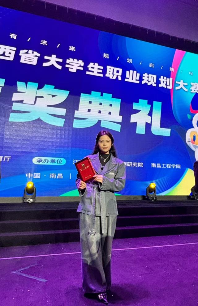 3月2日,第二届中国大学生职业规划大赛江西赛区总决赛圆满收官。我院2024级硕士研究生王君凭借出色的职业规划方案和现场表现,一路过关斩将,最终斩获就业赛道高教组研究生组金奖,为学校赢得了荣誉。