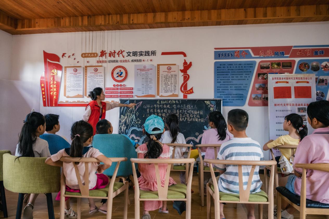 上午,团队通过 “房树人绘画测试”“几个人来的”“抱抱石榴籽” 等破冰活动,打破与孩子们的距离感,搭建沟通桥梁。随后开展音乐教学,带领孩子们学唱《在灿烂的阳光下》,感受歌曲中歌颂党、感恩生活的内涵。