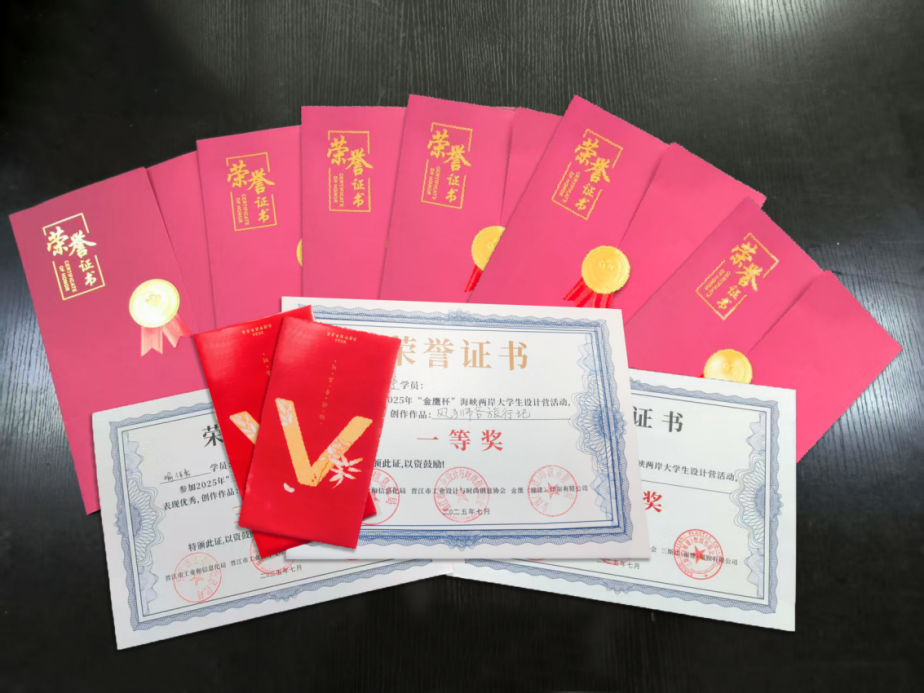 这个夏天,同学们跨越距离,走进力诚食品、福兴拉链、三斯达、金鹰印刷四大企业,开启了一场从校园创意到产业落地的实践之旅,两岸同学们的协同合作,更让创意成为连接文化、跨越海峡的桥梁。半个月的沉浸式学习中,同学们在食品包装、拉链创新、园区设计、印刷文创等领域深度实践,不仅交出了兼具创意与实用性的设计答卷,更在产业认知、设计思维、协作能力上实现全方位的成长。同时,同学们也凭借出色表现斩获佳绩,分别取得了一、二、三等奖,为这场实践画上圆满句号。