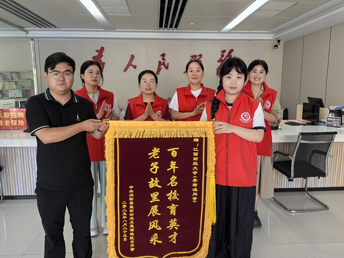 社区为了表达对她的认可和赞扬,特意赠送了一面锦旗,上面写着 “百年名校育英才,老子故里展风采”。这面锦旗,是对李若涵同学暑假社会实践成果的最高评价和最好奖励,更是她青春风采的生动写照。