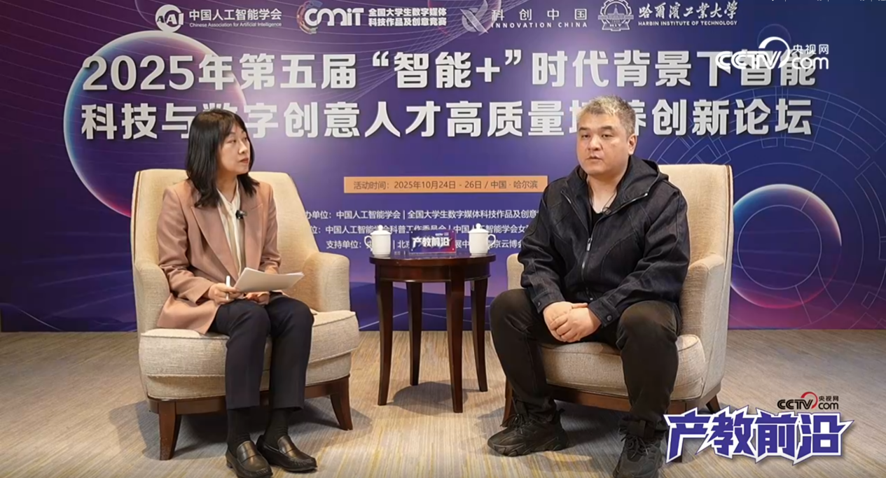 采访最后,唐睿主任展示了学生团队参与国际体育赛事开幕式数字内容项目的创作片段,以及校企联合实验室的VR教学场景,直观呈现产教融合的实践成果。该采访已在央视网"产教前沿"专题上线,成为高校艺术学科育人模式创新的典型案例。