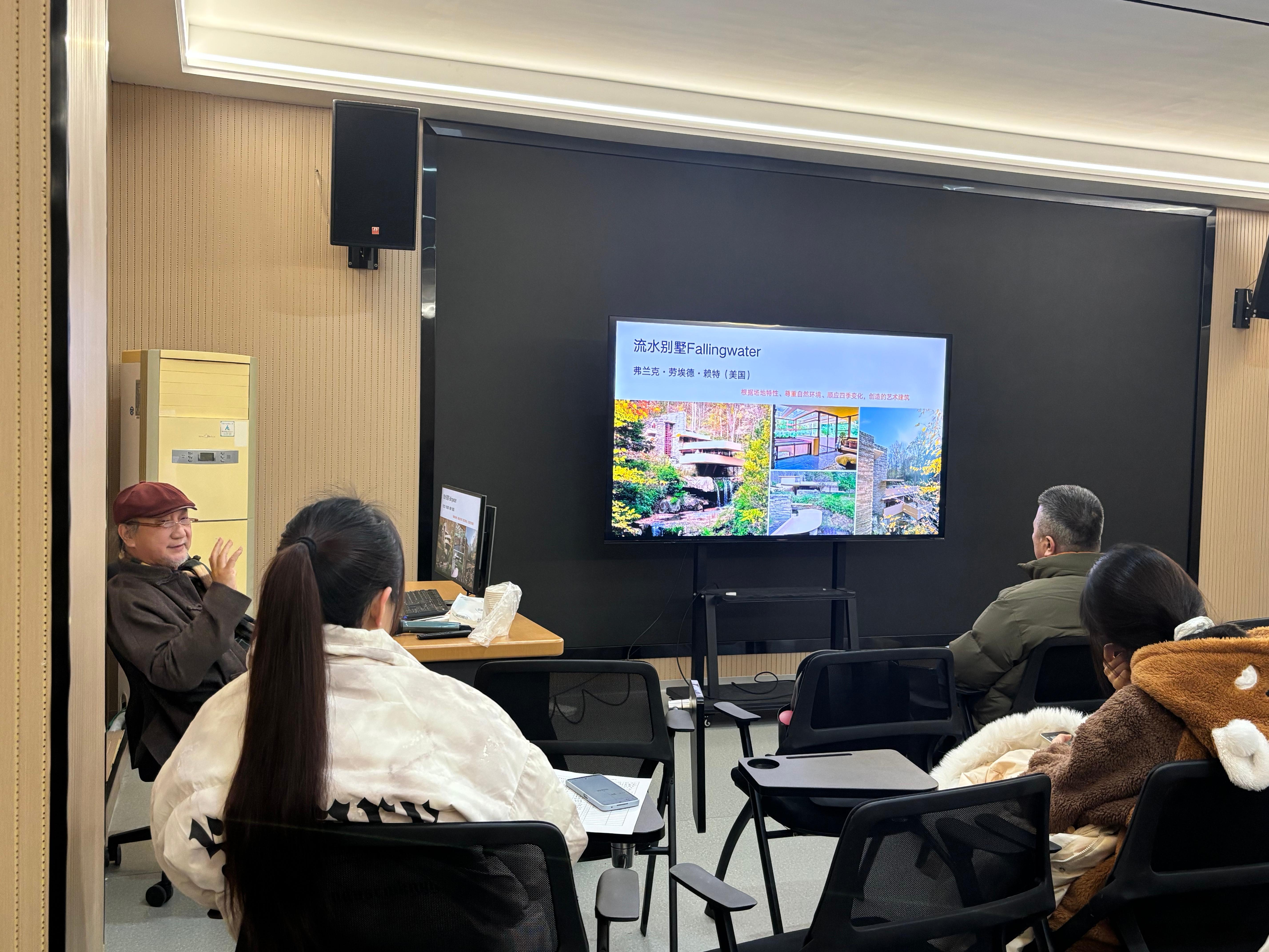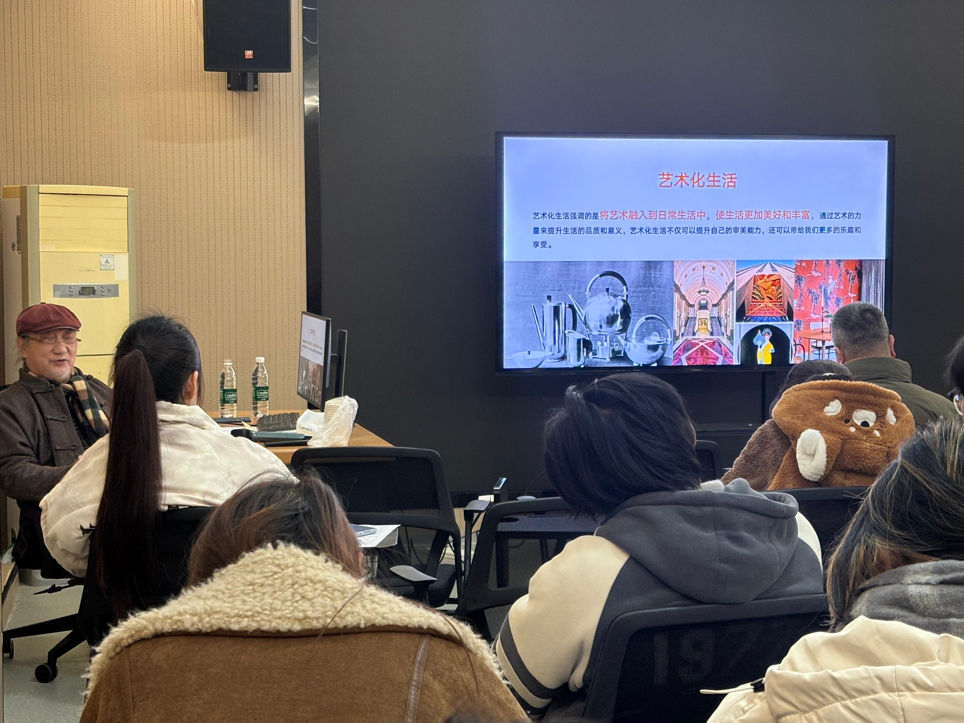 关于艺术化生活的实践路径,冯教授分享了诸多见解。他认为,艺术源于生活且融入生活,无需追求高大上,而应扎根日常细节。无论是莱特的流水别墅、安缦酒店的在地化设计,还是宋代美学中的器物与空间布局,都彰显了自然与人文融合的智慧。他鼓励设计类学子,要从自然与地域文化中汲取灵感,坚守原创精神,将美感注入空间、器物等生活场景,让艺术成为生活的有机组成部分。