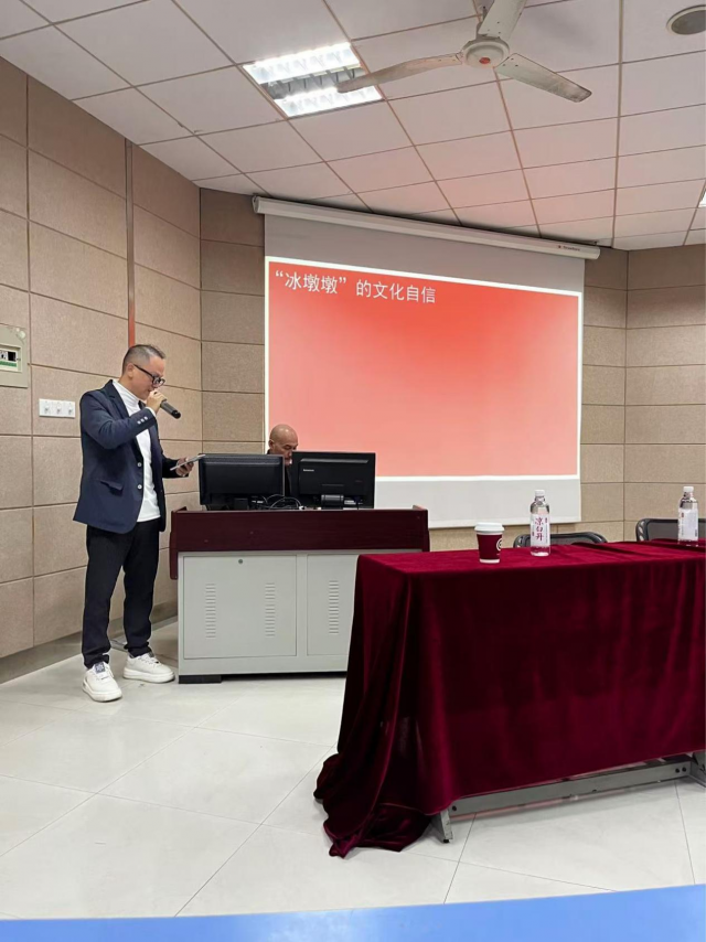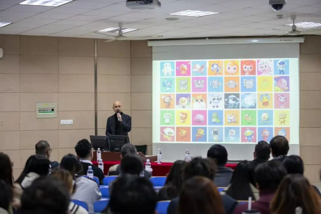 在讲座开始,刘平云教授首先向大家表达了自己对“冰墩墩”诞生过程的喜悦。他提到,“冰墩墩”的设计灵感源自于中国传统文化和现代元素的完美结合,目的是让这个吉祥物形象不仅可爱,还能传递出温暖与团结的寓意。