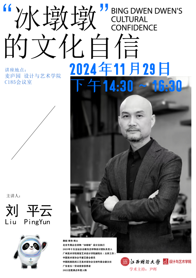 11月29日,设计与艺术学院邀请到“冰墩墩”设计总执行刘平云教授来我校举办一场精彩的讲座!此次讲座由尹晖老师主持,来到现场的还有兄弟高校的老师、同学及众多业界设计师和江财设计与艺术学院的老师及同学们。