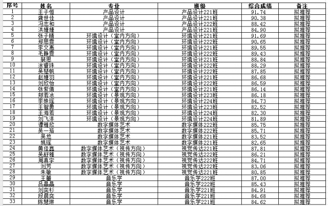 根据研究生推免工作安排,经学生本人申请、学院推免工作领导小组研究审核,综合考虑候选人申请意向、综合成绩等因素,现确定拟推荐名单,公示如下: