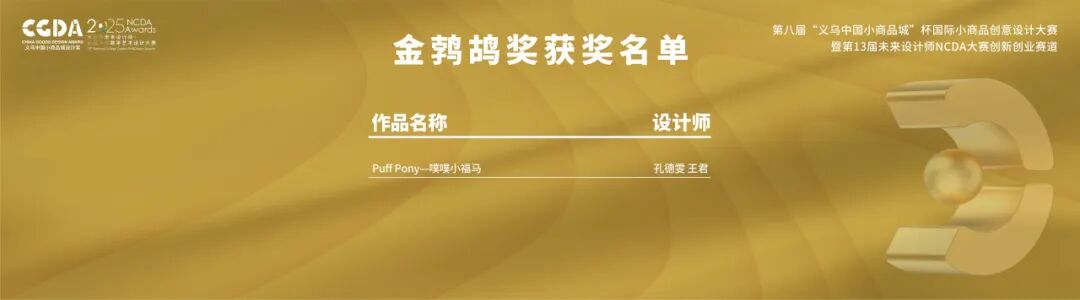 近日,2025年第八届“义乌中国小商品城”杯国际小商品创意设计大赛圆满落幕。本次大赛,设计与艺术学院师生团队再创佳绩,凭借卓越的创新设计实力共斩获奖金40余万元,并荣膺大赛“优秀组织奖”。在设计与艺术学院教师况宇翔、张相森、杨泳、柳腾芳的悉心指导下,来自设计与艺术学院303产品创新设计工作室的孔德雯、王君同学的作品《Puff Pony- 噗噗小福马》从众多参赛作品中脱颖而出,一举夺得大赛唯一金奖“金鹁鸪奖"(奖金30万元),王君同学另获铜鹁鸪奖,陶一卓团队与吴苏毅团队分获最佳创意奖,聂静妍团队荣获优秀奖。此外,同学们在小商品AI创意赛道中成功摘得四项质创奖,全方位展现了在产品设计领域的多元创新能力与综合竞争力。